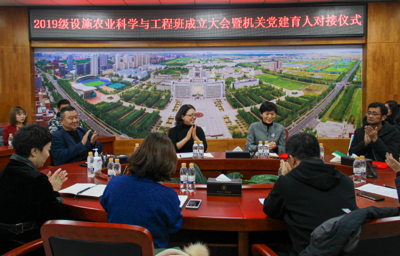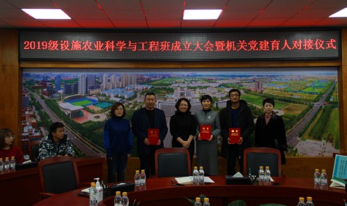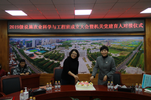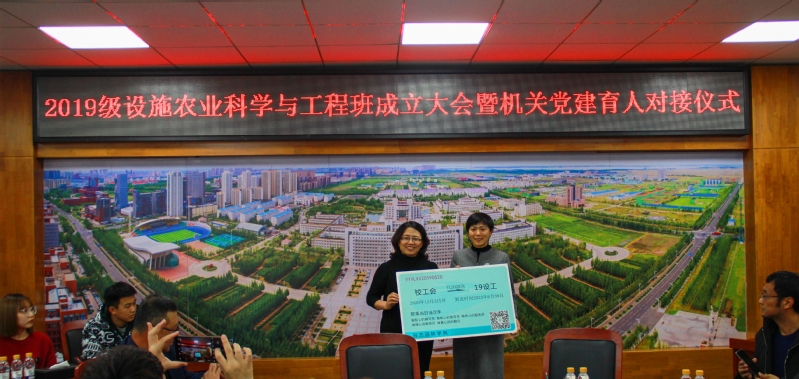 会上,学院党总支书记沈鸿与校工会副主席范文艳共同为对接班级揭牌,并举行了聘任仪式,校工会3位党员教师作为2019级设施农业科学与工程班课业导师,与学院共同助力班级成长、学生成才。