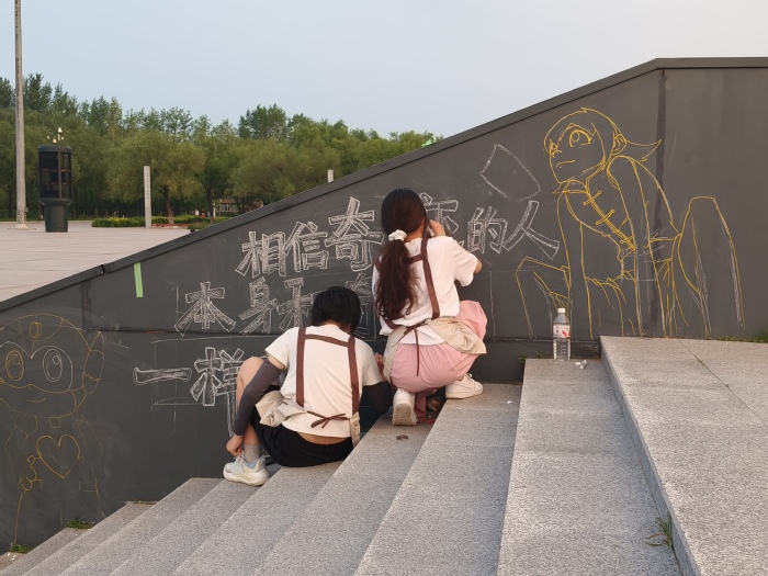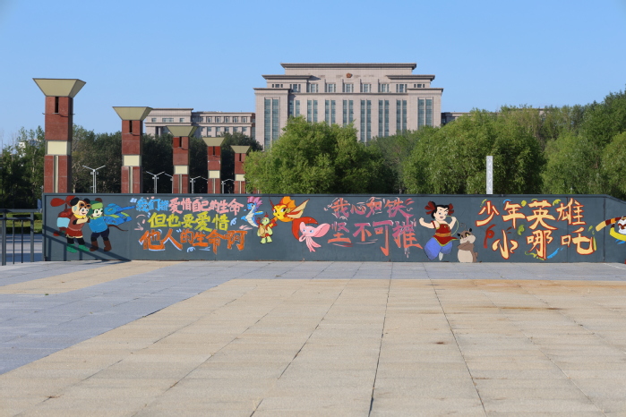 为丰富暑期实践,将“四创”与城市更新结合,团队参与“青春绘油城”大庆市第二届城市涂鸦大赛,于暑假期间在大庆市时代广场进行创作。